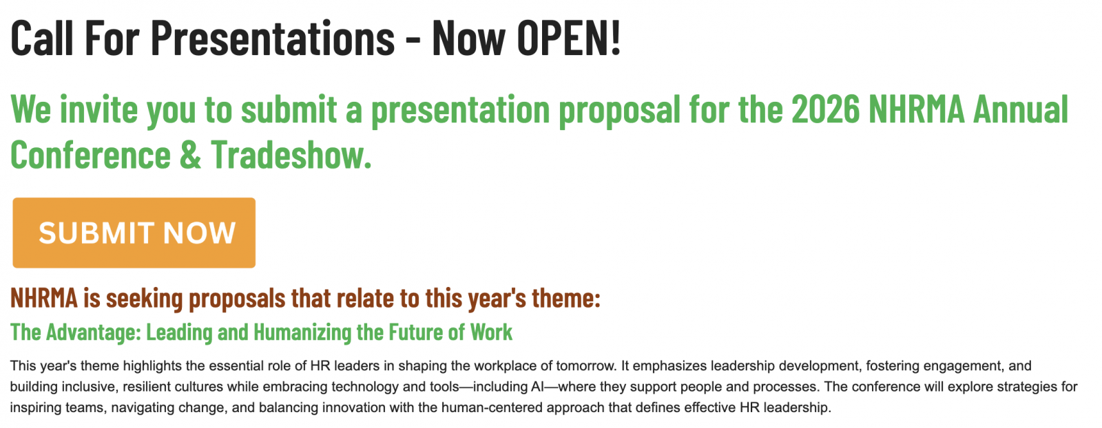 Call for Presentations for the 2026 NHRMA Conference